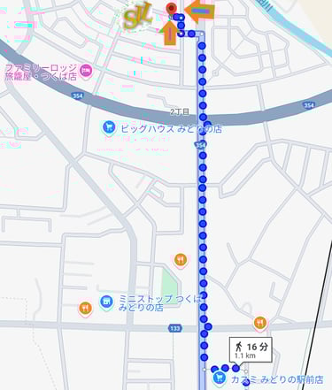 つくばExpressのみどりの駅から徒歩16分